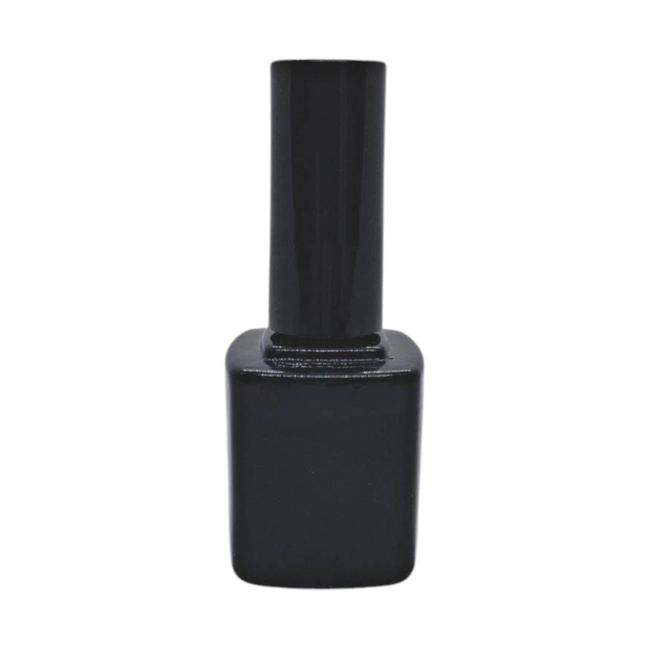 10mlの空のネイルジェルボトル、四角形のガラスボトル、13/415のネック、光沢のある黒または透明な青色の二重コーティングが施されたボトルは、ネイル市場で人気のあるジェルネイルポリッシュ用のボトルです。